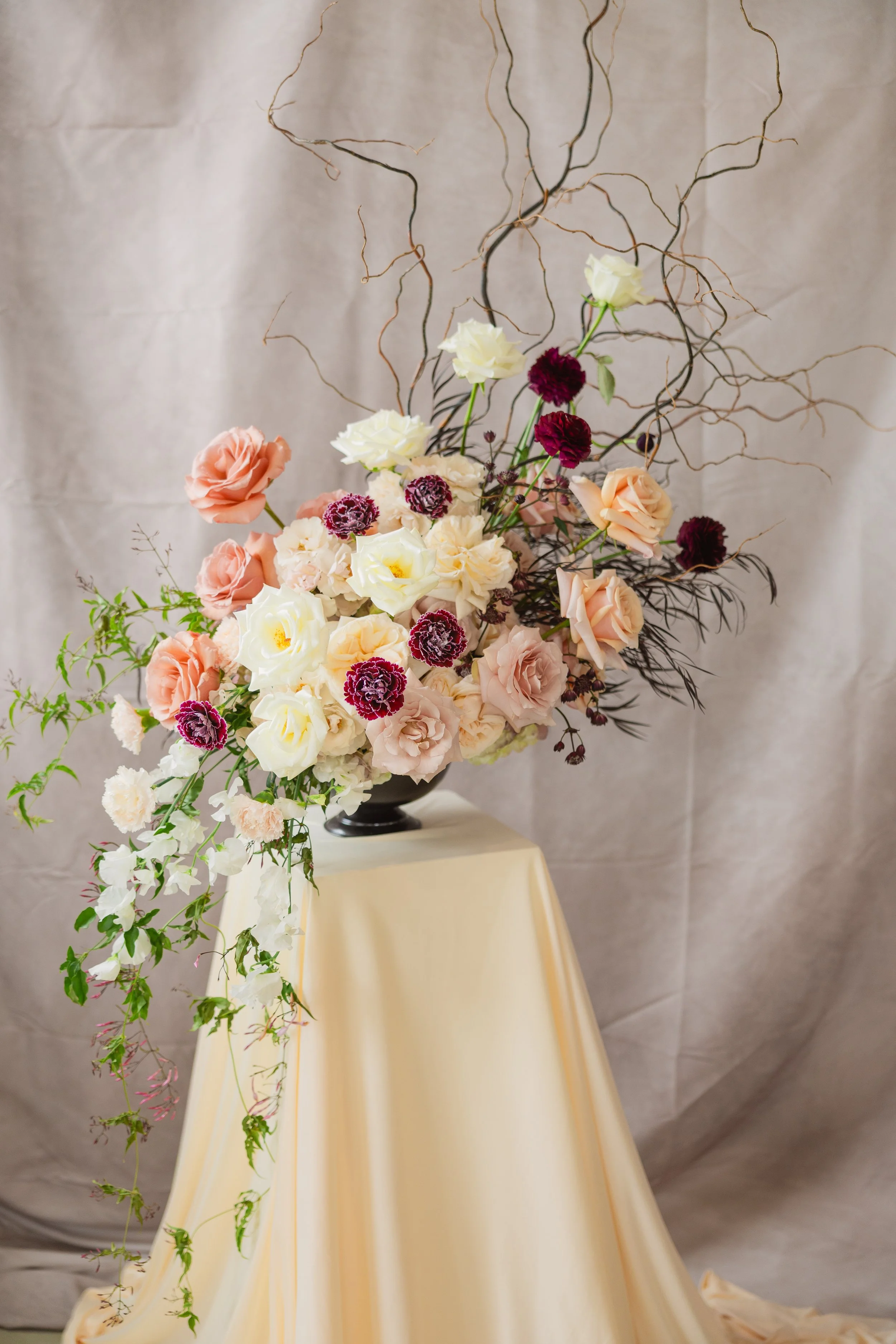 The majority of J. Starr’s Design clients opt to go the completely custom route with an individualized proposal that outlines your wedding floral needs. This includes floral designs for personal flowers (bouquets/boutonnieres/etc), ceremony designs, centerpieces, floral accents, decor rentals & more. From show stopping arches to dramatic hanging floral chandeliers to candlelit centerpieces, every detail is discussed to ensure your vision is executed to perfection.