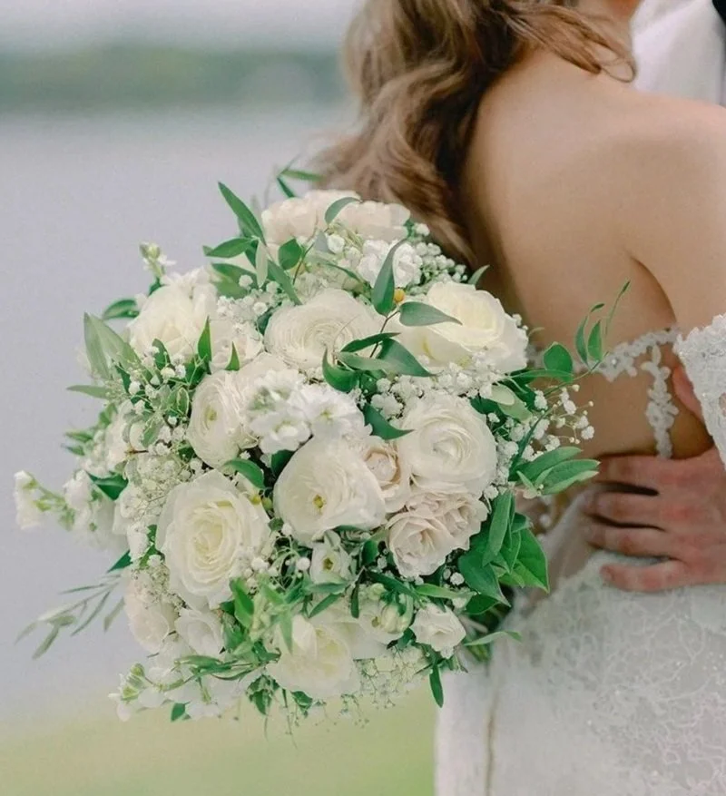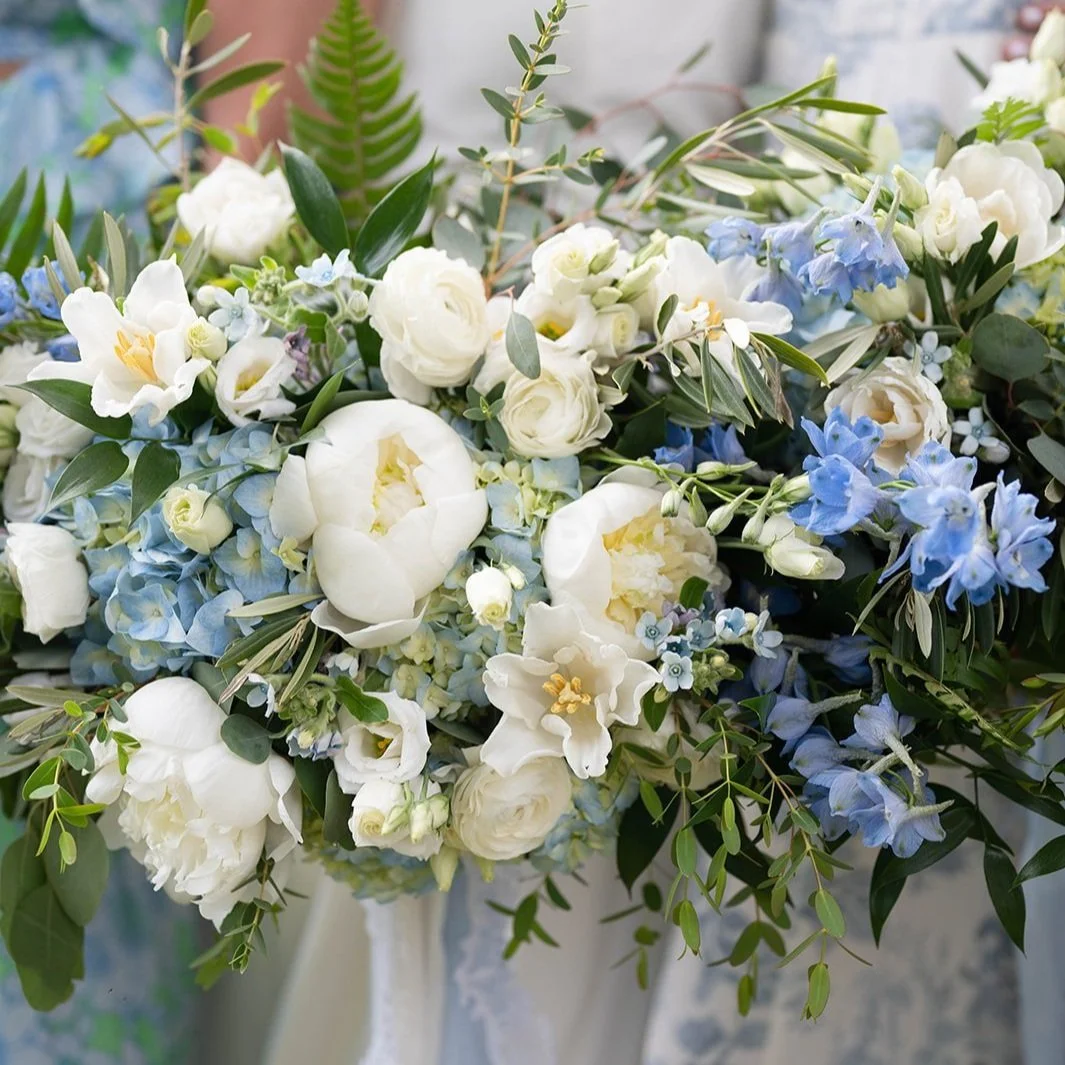 Coastal Elegance in White & Blue with Mixed Greenery Accents